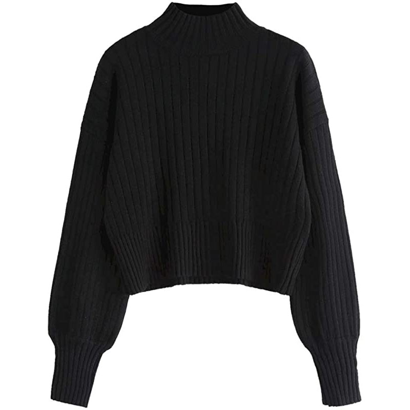 ZAFUL Women Mock Neck Long Sleeve Ribbed Knit Basic Pullover Sweater